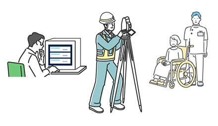 | 建設業 | さく井、建築板金、冷凍空気調和機器施工、建具製作、建築大工、型枠施工、鉄筋施工、とび、 石材施工、タイル張り、かわらぶき、左官、配管、熱絶縁施工、内装仕上げ施工、サッシ施工、 防水施工、コンクリート圧送施工、ウェルポイント施工、表装、建設機械施工、築炉 |