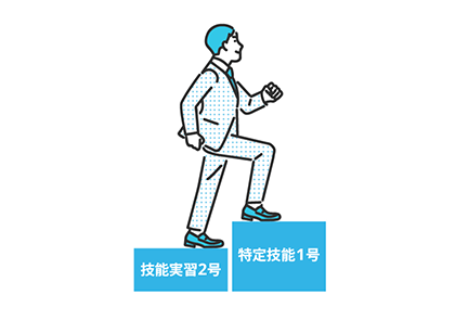 その後、2年目から3年目までは「技能実習2号」ビザ(在留資格)、4年目から5年目までは「技能実習3号」ビザ(在留資格)で日本に滞在することができます。